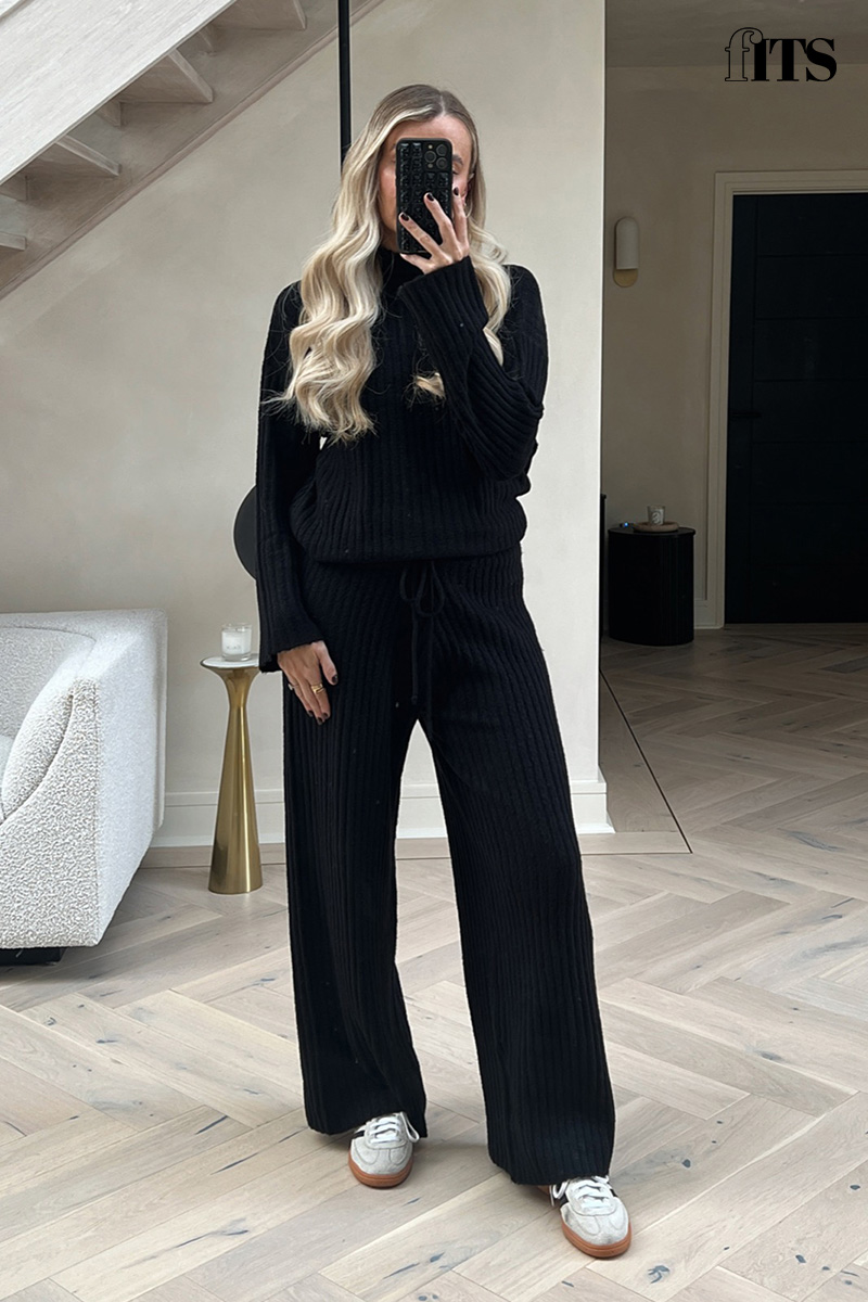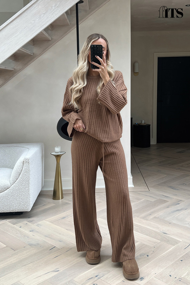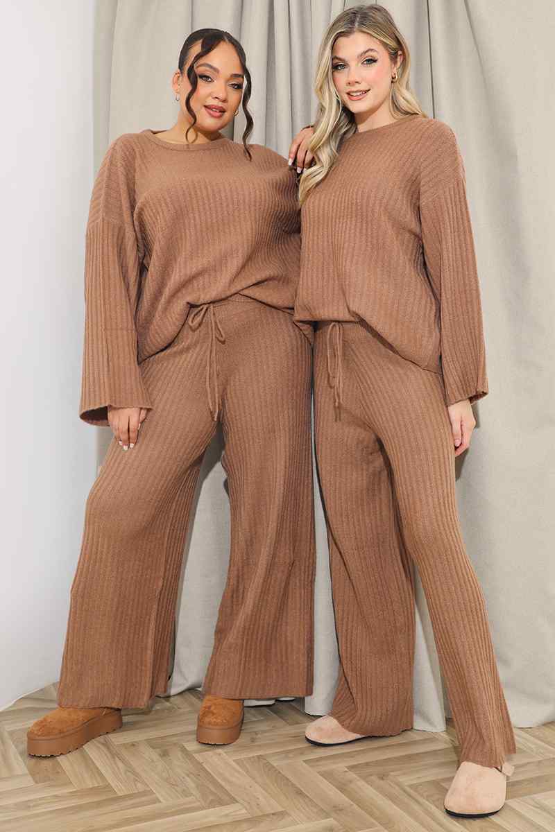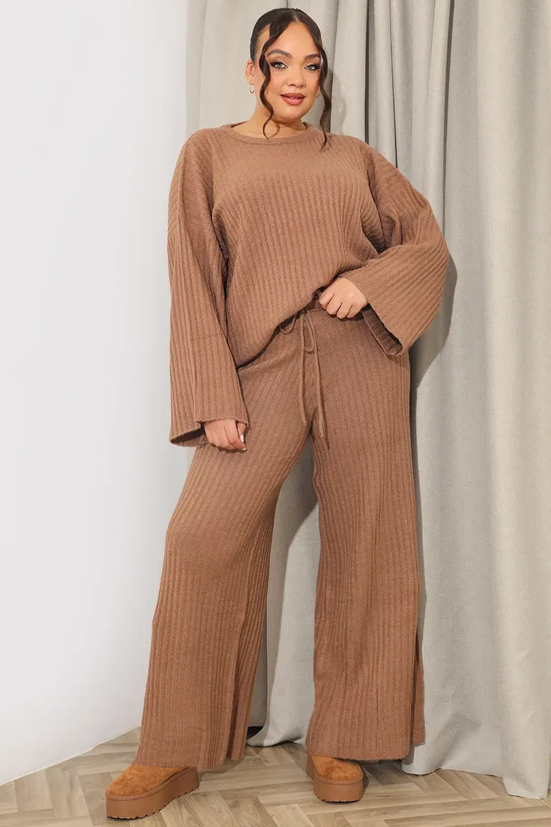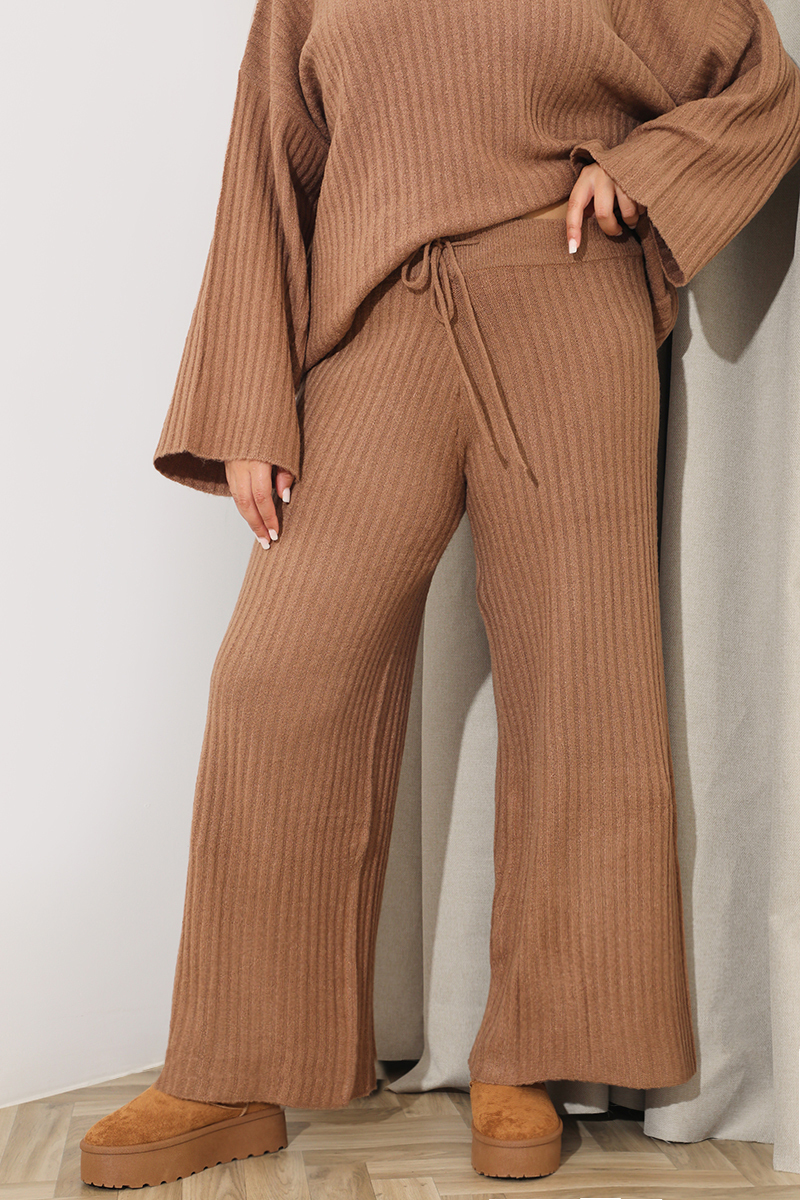 Ribbed Wide Leg Knitted Co-Ord Trouser